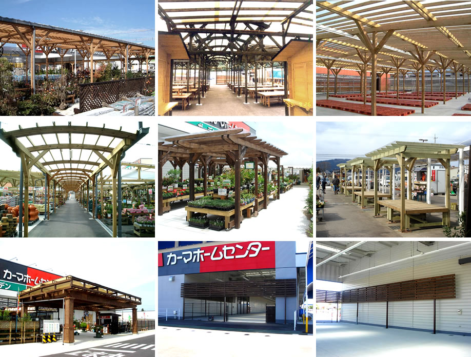 木製加工品の製作販売(ログハウス、ガレージ、パーゴラ、ウッドデッキ、ウッドフェンス、テーブル、収納小屋、 木製品、その他)レーザー彫刻加工、公共事業関係