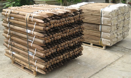 ベトナム製杭を自社工場にて生産しております。先付加工、乾燥、防腐加工処理など全て自社工場内のチェック体制のもと生産、出荷しております。